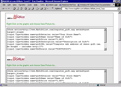 The next step is to get the Add to MyGiftList buttons from our web site.